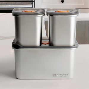 1. 뚜껑에 달린 버튼 하나만 누르면 열고 닫기가 쉬움 (※버튼을 사용하지 않고 강한 힘을 주어 강제로 뚜껑을 열면 내용물이 쏟아질 수 있음) 2. 스테인레스 스틸(SUS304)로 제작되어 녹과 부식에 매우 강하며 가볍고 고급스러움 3. 테트리스 형태로 냉장고 공간을 효율적으로 정리할 수 있음 4. 31일 다이얼이 있어 보관일 표기 가능 5. 전자레인지 사용가능